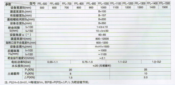 3.耙齿规格两种,粗格栅耙齿节距t=150mm耙齿节距,细格栅耙齿节距t=100mm;